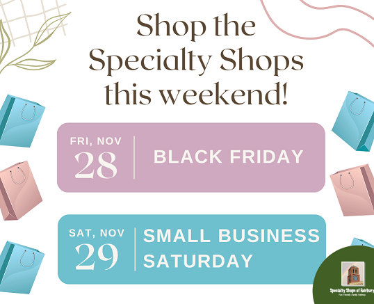 Shop the Specialty Shops! Enjoy Small Town Shopping!