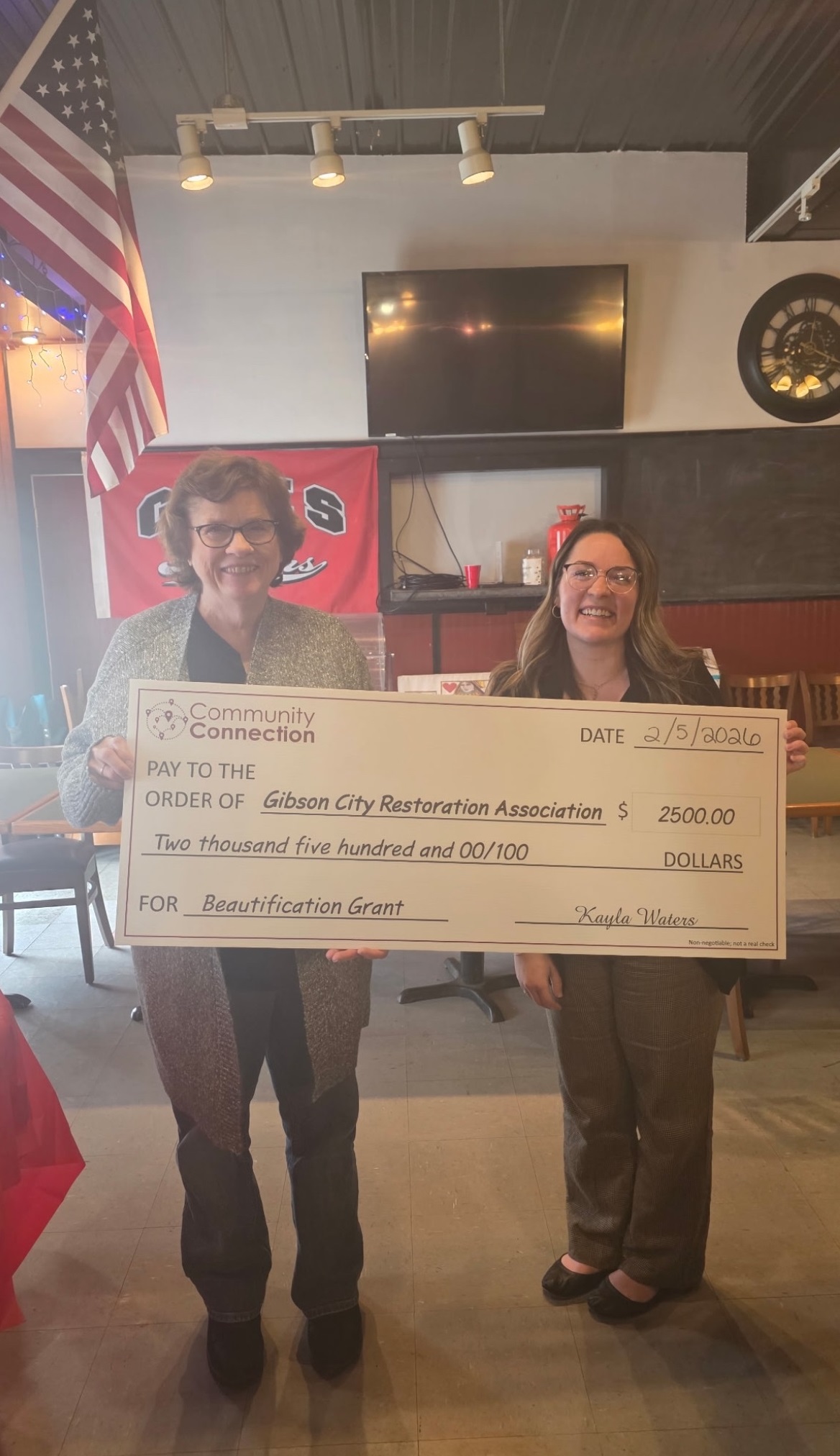 Gibson City Restoration Association, Gibson City – $2,500 with a matching condition